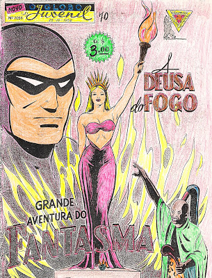 Hoje trago para vocês uma raridade, um fac-símile de uma edição de uma antiga revista quinzenal que fez muito sucesso entre a garotada que curtia os gibis: O globo Juvenil em sua edição # 2056, que foi publicado em Outubro de 1952, trazendo entre outros uma grande aventura do Fantasma, antes mesmo deste ter sua revista própria que viria somente 2 anos mais tarde. E além disso trazia uma belíssima capa desenhada pelo ilustrador "Lutz", que fazia parte do corpo de desenhistas da Editora Rio Gráfica.