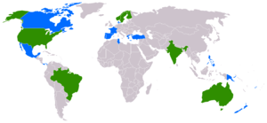 um interesse em todo o mundo onde o Fantasma é publicado (marcado em verde no
