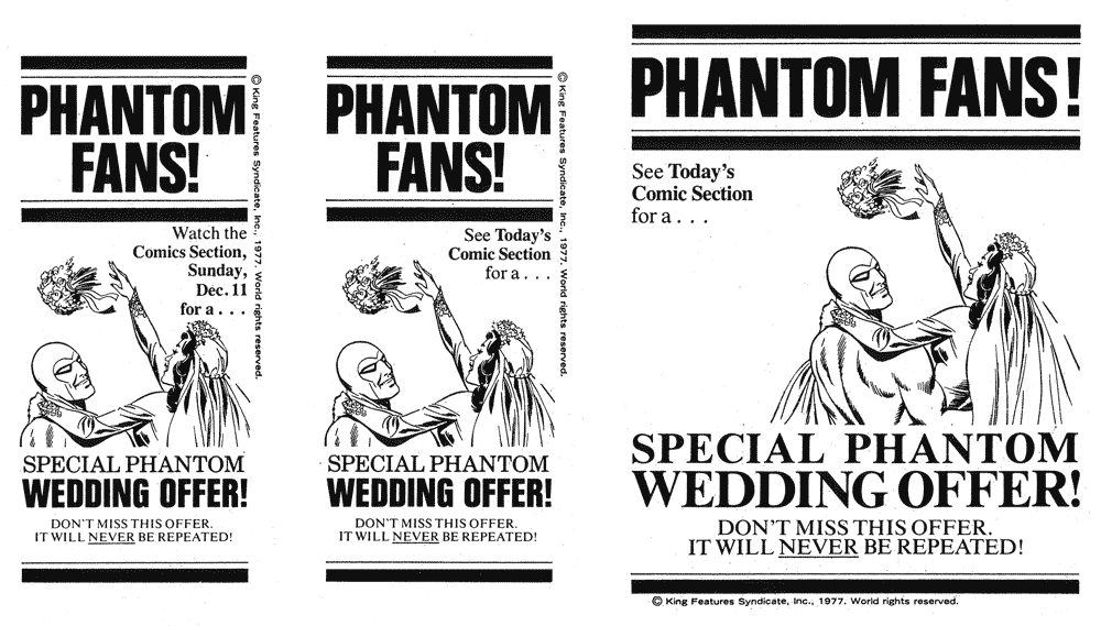imprensa mundial anunciando o casamento do Fantasma com Diana.